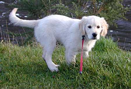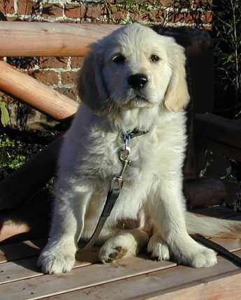 From getting stuck on the bottom step of the stairs and whimpering loudly only 3 weeks ago, Sheedy can now jump up onto chairs and can climb up stairways in seconds. He is a very alert dog and watches birds flying overhead quite attentively. He also appears very intelligent and already has learnt very quickly how to sit, stay, fetch, lie down and leave food until told to eat. He is now almost fully house trained, but not quite!