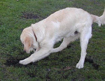 An action photo of Sheedy digging yet another hole in the lawn. His present record is about one foot deep in around 5 minutes!